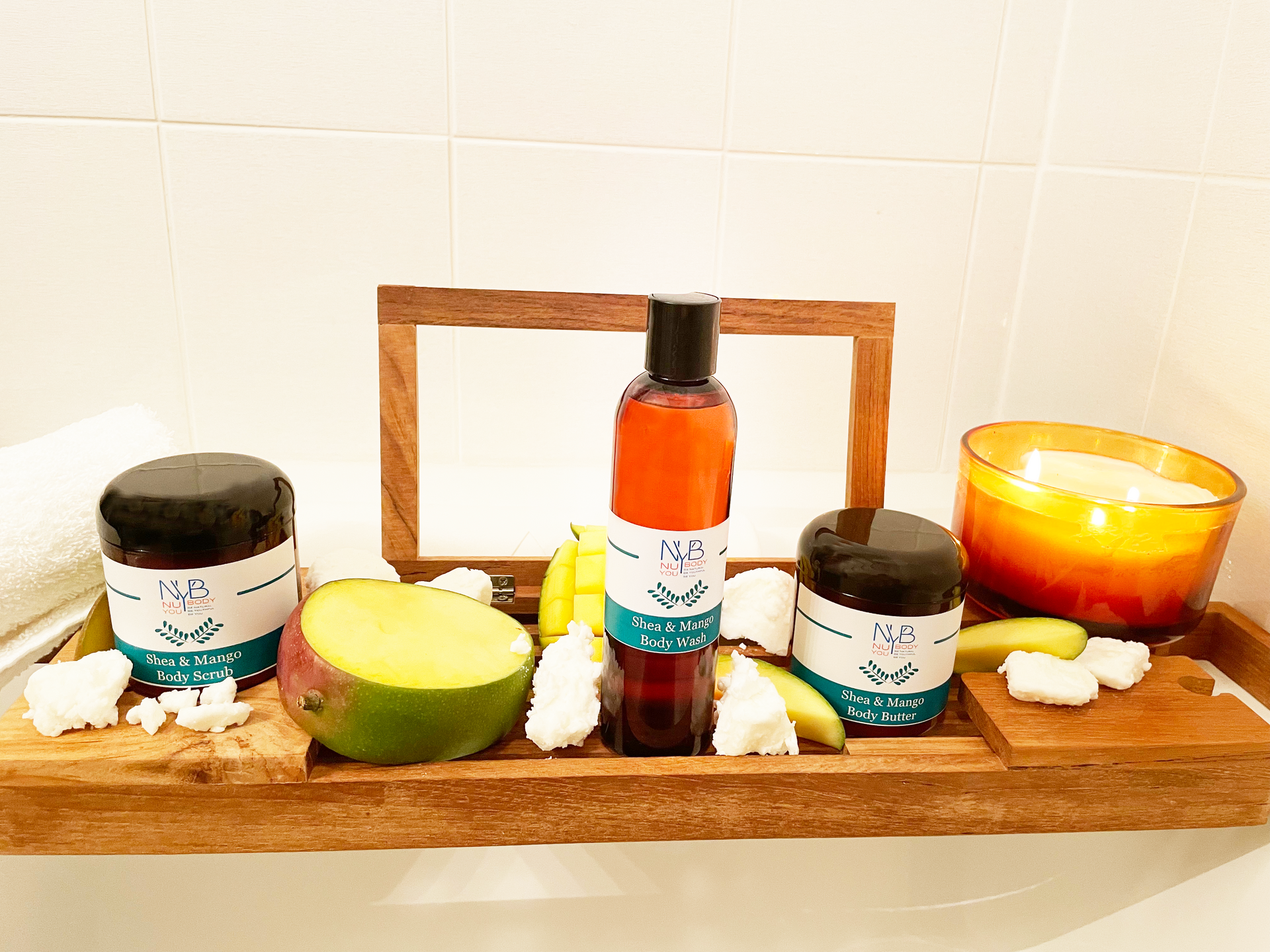 Our most popular scent! This foaming Body Wash is infused with Mango Butter to keep your skin soft, smooth, and glowing. The Body Scrub offers a luxurious feeling as the sugar gently exfoliates the skin. Rich exotic Body Butter is filled with vitamin E and oils and leaves the skin feeling renewed, smooth and soft.